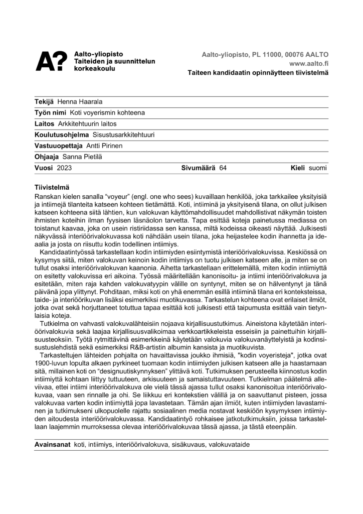 koti voyerismin kohteena ←